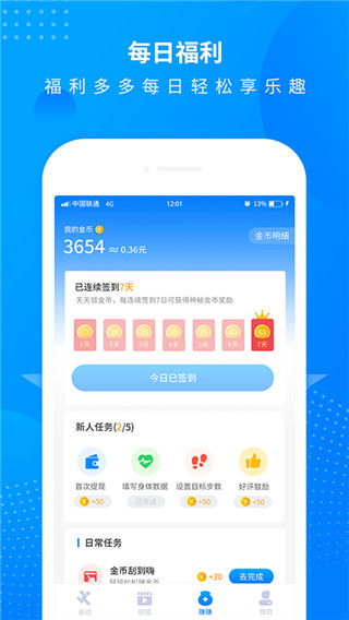 5、通过签到和完成新人任务、日常任务,用户可领取丰厚金币奖励,轻松赚取收益;