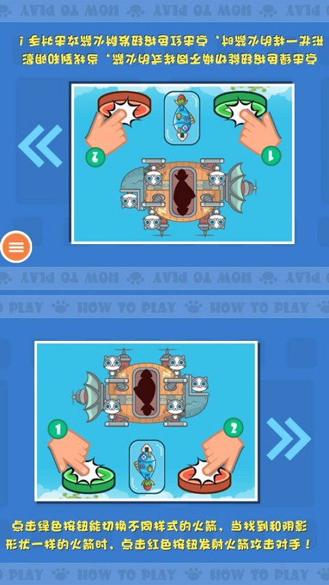 以王牌空战为例,点击绿色按钮能切换不同样式的火箭,当找到和阴影形状一样的火箭时,点击红色按钮发射火箭攻击对手。
