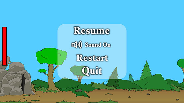 游戏菜单的四个选项分别是:返回游戏、声音开关、重新开始、退出游戏。