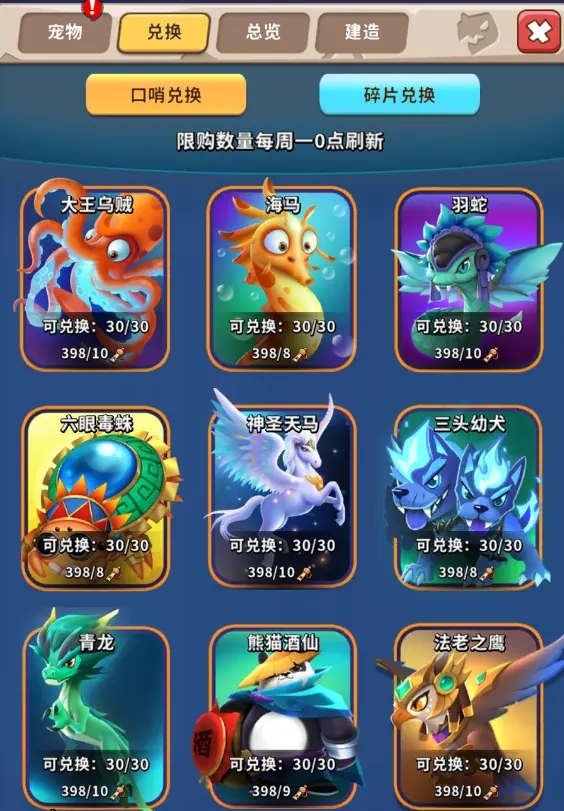 收集30宠物碎片即可召唤神宠