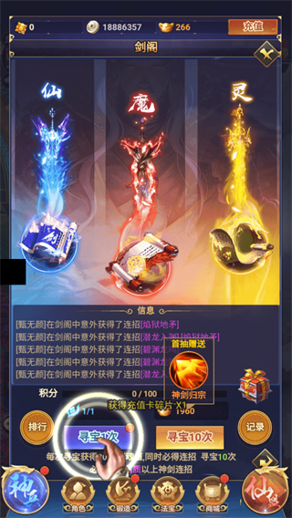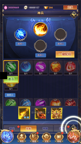 可以同时养成三把神兵,给神兵配备仙剑连招。