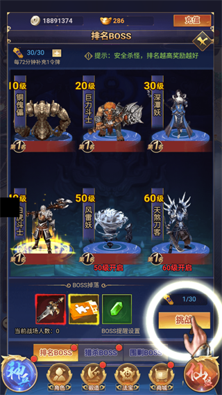 前面跟着闯关任务指引做,做到15关之后可以勾选自动闯关,通过闯关打怪挂机以及装备熔炼来获得经验。