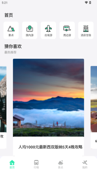 在首页板块,用户可以浏览到各种旅游攻略,以及国内外景点等