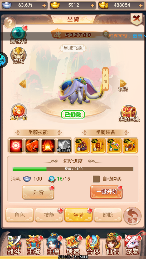 培养每个人的专属坐骑,不断升级幻化能够出现不同的外形。