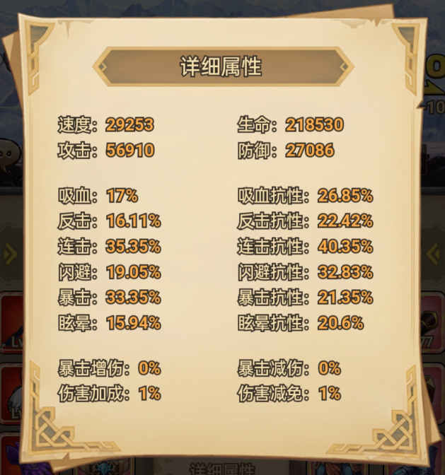 连击属性的百分比代表了攻击敌人时产生连续攻击的概率,而连击抗性的百分比代表了敌方攻击我方时无法产生连击行为的概率。