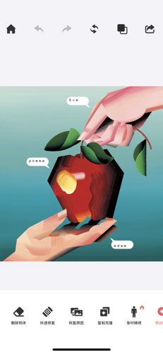 接着我们可以选择底部工具栏的删除物体、快速修复、复制克隆和克隆印章四种功能,来将水印去除。