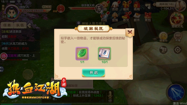 今天给大家带来的是《热血江湖手游》寻宝中狱火龙枪的寻找流程。首先,玩家需要在泫勃派NPC韦大宝处,通过江湖密探购买到狱火龙枪的线索碎片,数量足够后即可开启寻宝任务。