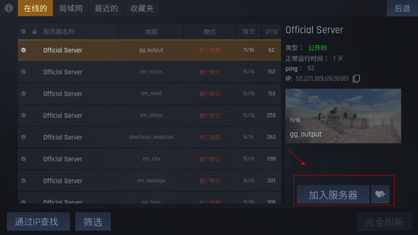 然后选择一个游戏模式,点击【加入服务器】即可;