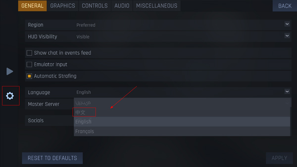 最后点击【APPLY】应用,返回游戏就可以看到语言设置成中文了。