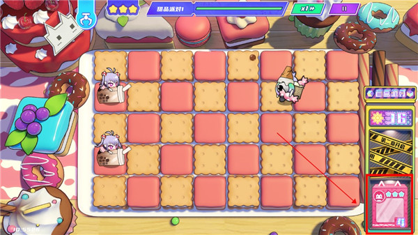 然后再从最后开始点盲盒(请务必等她们打完了一个,空闲了再点下一个,不要一口气把一条点完!!)出了攻击甜品建议先放boss一条