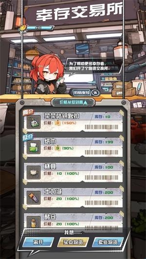 当玩家完成所有事件后就可以通关,通关会回到避难所,点击交易所可以出售获得的物品。