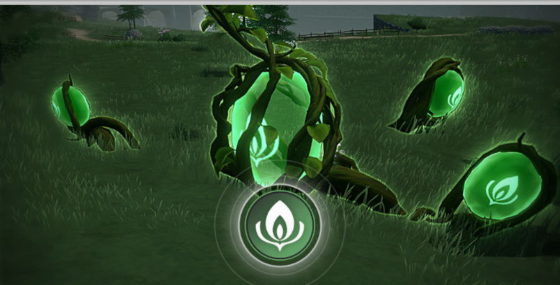 第一个解密,需要使用草系角色,攻击小绿球,把附近所有的小绿球清理掉之后,就可以完成解密了。