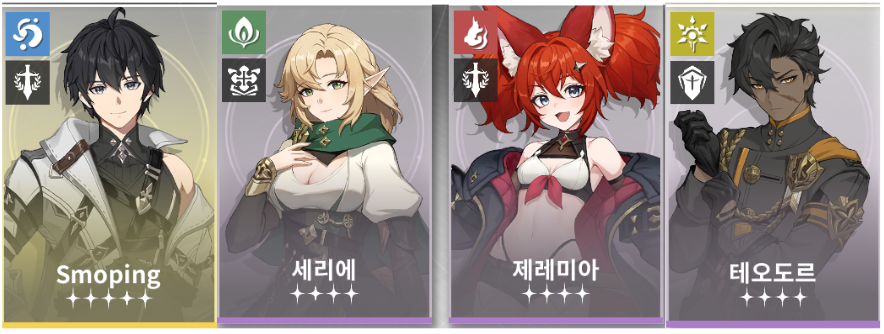 初始角色为以上四位,第一个也就主角,如果抽到以下五星角色可以直接进行替换。