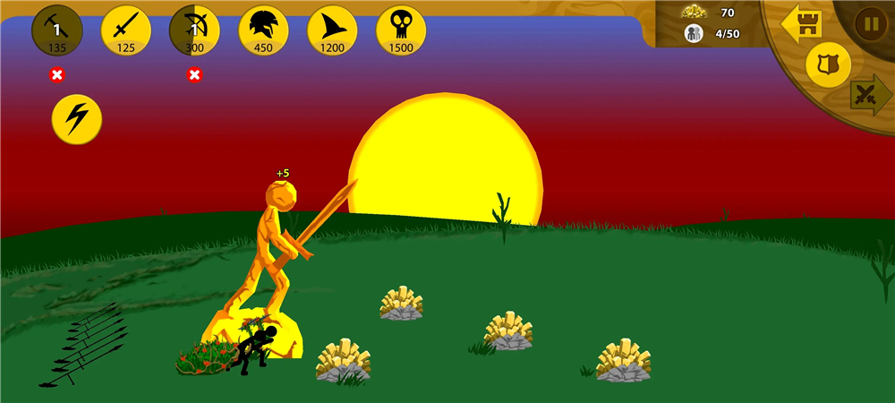 游戏中玩家将亲临激烈刺激的战场,指挥你的火柴人勇士进行作战,而且游戏中有着各种火柴人士兵可供训练。