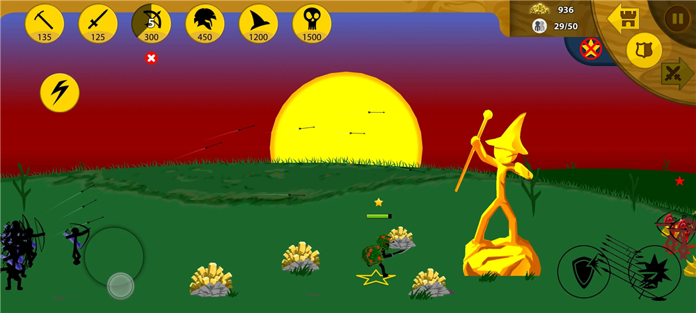 《火柴人战争:遗产》是一款极具策略性的对战游戏,延续了经典的简约火柴人风格。在游戏中,玩家将化身勋章之国的领袖,率领英勇的火柴人军团征战四方,开疆拓土。值得注意的是,游戏采用了独特的资源管理系统——招募兵种需要消耗金币,因此玩家不仅要运筹帷幄指挥作战,还需派遣部分火柴人开采金矿,确保国库充盈。这种双线并行的玩法设计,让游戏体验更加丰富多元。