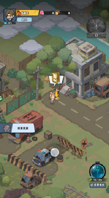 探索居民区,收集丰富的食物,食物非常重要,尽量多收集一点。
